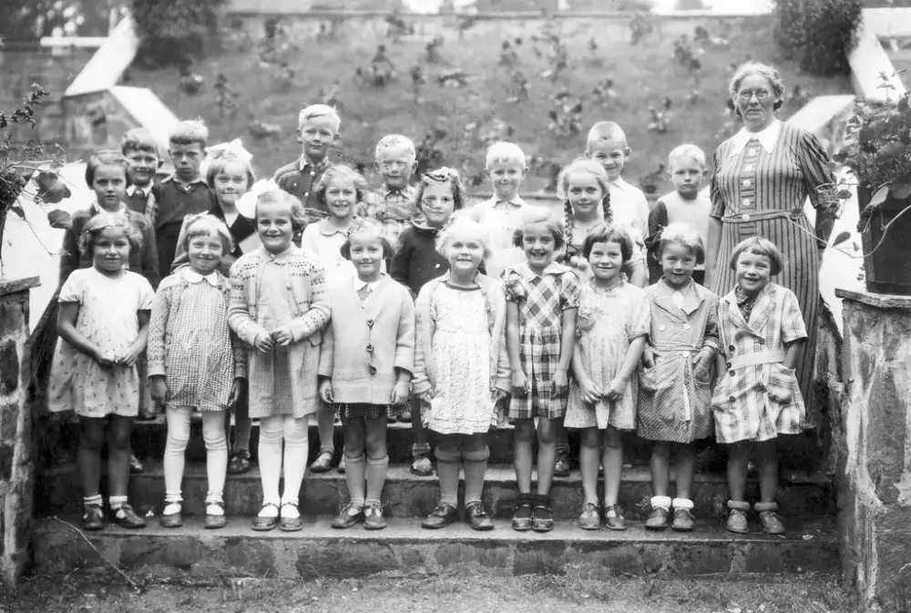 Klassene ved folkeskolen ble fotografert i trappa som førte opp mot festplassen. Denne ble revet under omlegging i 1960-åra for å gi plass til Byparken Amfi.. Kongsvinger museum