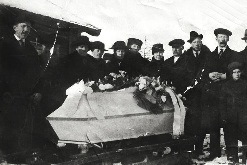 Det var vanlig å ta bilde av de avdøde på den tida spanskesjuken herjet. På den måten hadde familien et minne etter sine kjære, som her hvor et lite barn fra Opakermoen i Nes kommune har dødd av spansken. Foto: Museene i Akershus