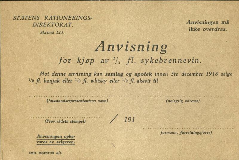 Rasjoneringskort for brennevin fra høsten 1918 Foto: Anno Kongsvinger museum