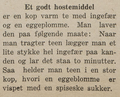 Det manglet ikke på forslag til botemidler mot spansken. Foruten tjæredamp, var te med eggeplomme og rødbetsuppe blant forslagene. Det viktigste var likevel å sørge for god pleie til de mange som ble sjuke.